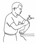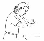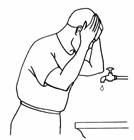 洗脸 (上自额发边下至颔下,两旁至耳,三次)